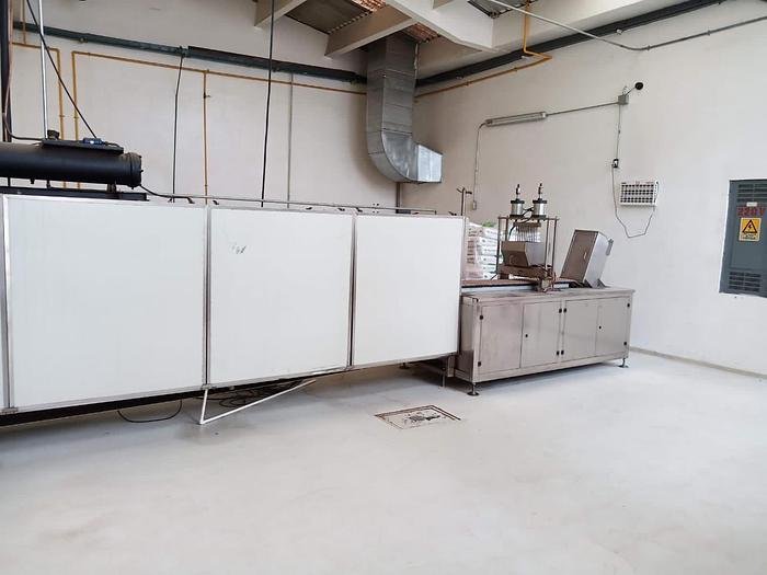 This lightly used starchless gummy candy line from Gummy Line has a production capacity of 120 kg per hour, making it an ideal choice for medium-scale confectionery operations. Designed for efficiency, this line utilizes a sanding drum for the cooking process, ensuring consistent texture and quality of the gummy products.