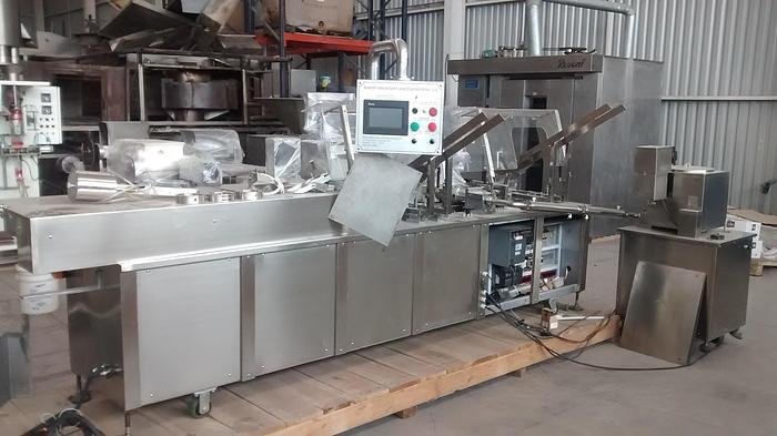 The BME 2 Row Sandwich Machine is designed for effective and efficient biscuit sandwiching operations. It features a robust main unit, controlled by motors and a PLC system, with a stainless-steel touchscreen for easy operation. Its design includes a quick-change head, allowing for varied cookie shapes to be processed seamlessly. An automatic detection unit and double chain pusher optimize the sandwiching process. All parts in contact with products are made from stainless steel and remain unpainted for hygiene purposes.