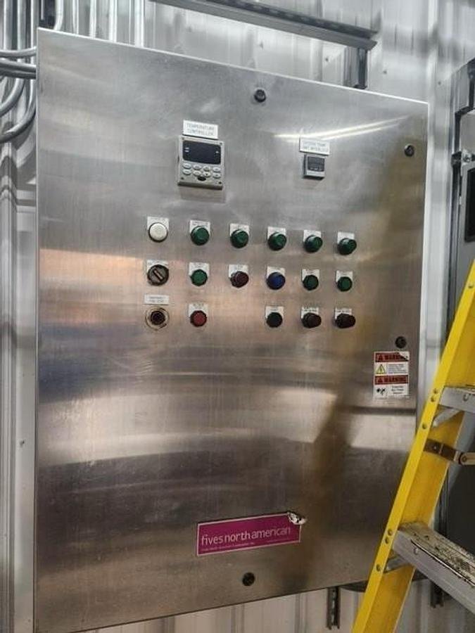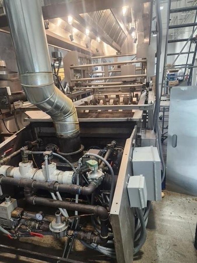All five burners of the fryer have been updated with North American Fire All burners in the past 12 to 18 months and underwent a full tune-up as of June 2024. The overall dimensions of the unit are approximately 4 feet in width and 26 feet in length, making it a compact yet capable piece of equipment for high-volume frying tasks.